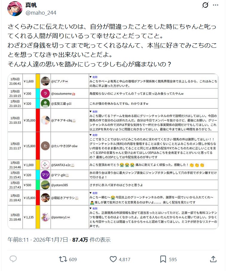 これに対し、正月明けの某日Xにて本人より発信あり