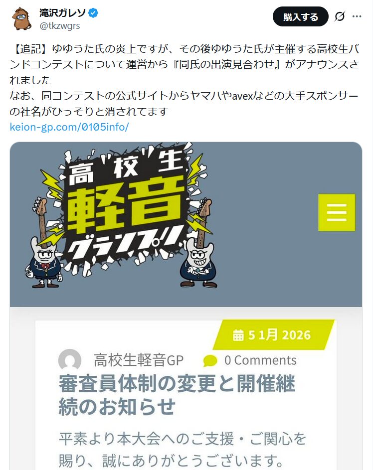 後日謝罪のツイートするもいまだ沈静化が見えない状況です。