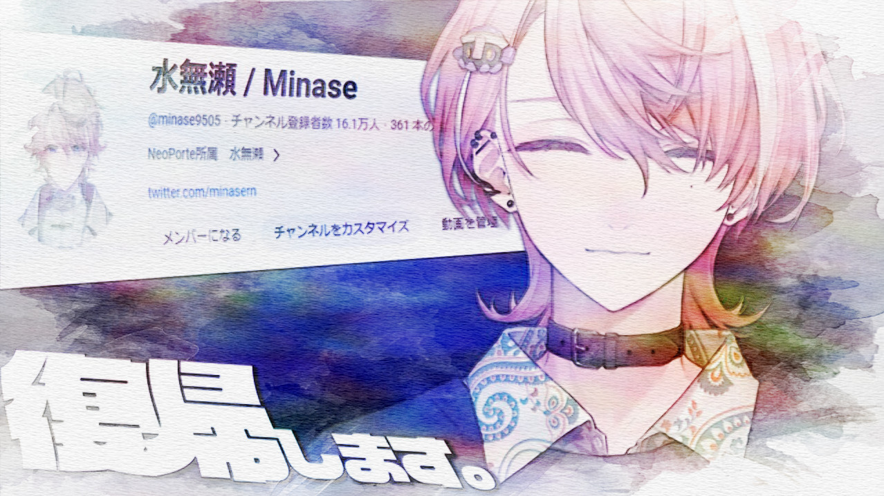 水無瀬(Minase)さんは、VTuber事務所「Neo-Porte(ネオポルテ)」に所属する男性VTuberです(ネオポルテ1期生)。彼の公式設定は、「自由に放浪する旅人」ですが、その実態は「旅人とは名ばかりで、普段はニートをしている」という、自己設定を裏切るコミカルなギャップを持つキャラクターです。