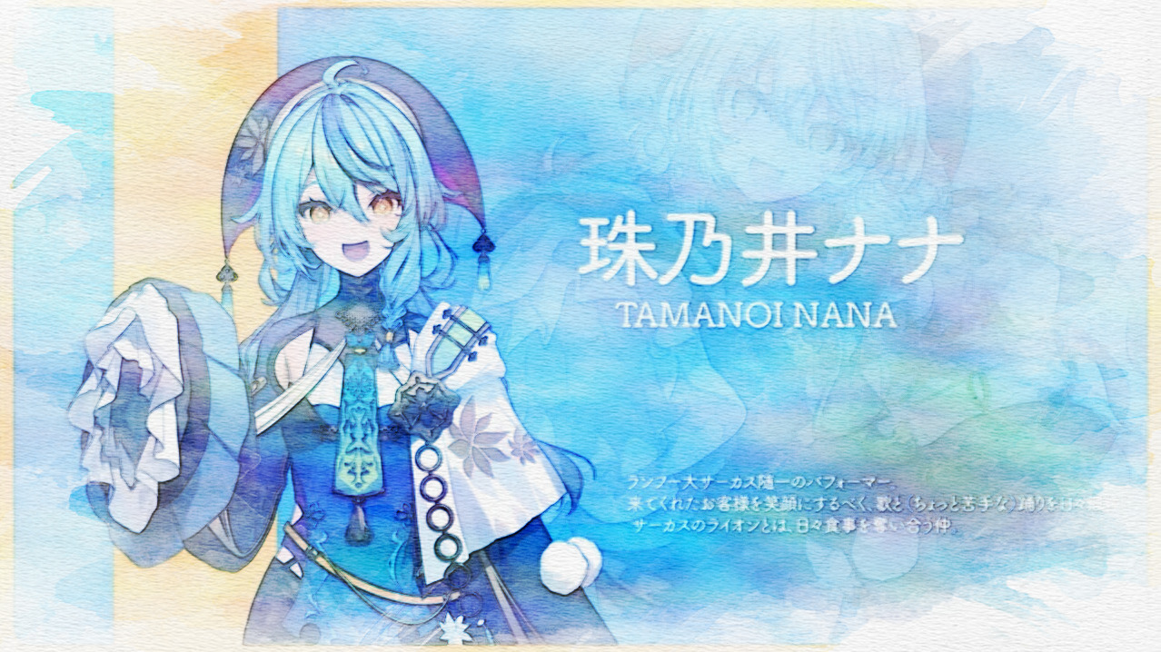 珠乃井ナナ(Tamanoi Nana)さんは、VTuberグループ「にじさんじ」に2024年6月にデビューした女性バーチャルライバーです。彼女の公式設定は、「ランフー大サーカス随一のパフォーマー」であり、おばあがサーカスの団長を務めるという、華やかで才能溢れる背景を持っています。
