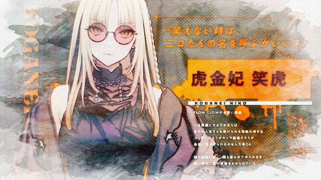 虎金妃笑虎(こがねいニコ)さんは、VTuber事務所「ホロライブプロダクション」の新ブランド「hololive DEV_IS」の新ユニット「FLOW GLOW(フロウ グロウ)」に所属する女性VTuberです。ユニット内では「お笑い担当」を公言しており、その活動の核は「人を笑顔にするためならば、自分の人生すらも捧げられる」という底知れぬ情熱にあります。